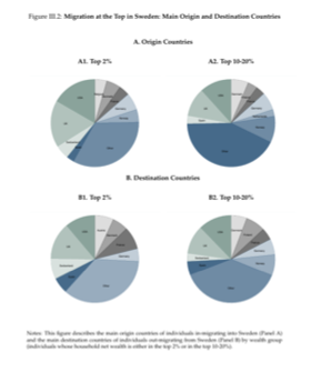 Mere systematisk data om fraflytning af de rigeste fra Sverige i årene op til at de afskaffede deres formueskat i 2006 bekræfter, at de super-rige ikke nødvendigvis alle søger i skattely, når de vælger at fraflytte. Således var nogle af de mest populære destinationer for de Svenske rige ikke Caymanøerne eller Bermuda, men derimod Danmark, Tyskland og Frankrig: